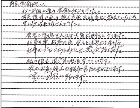 営業の唐渡さんには大変お世話になりました。 仏事の事、お墓の事、色々おそわりました。 仕事のプロフェッショナルと感心致しました。
