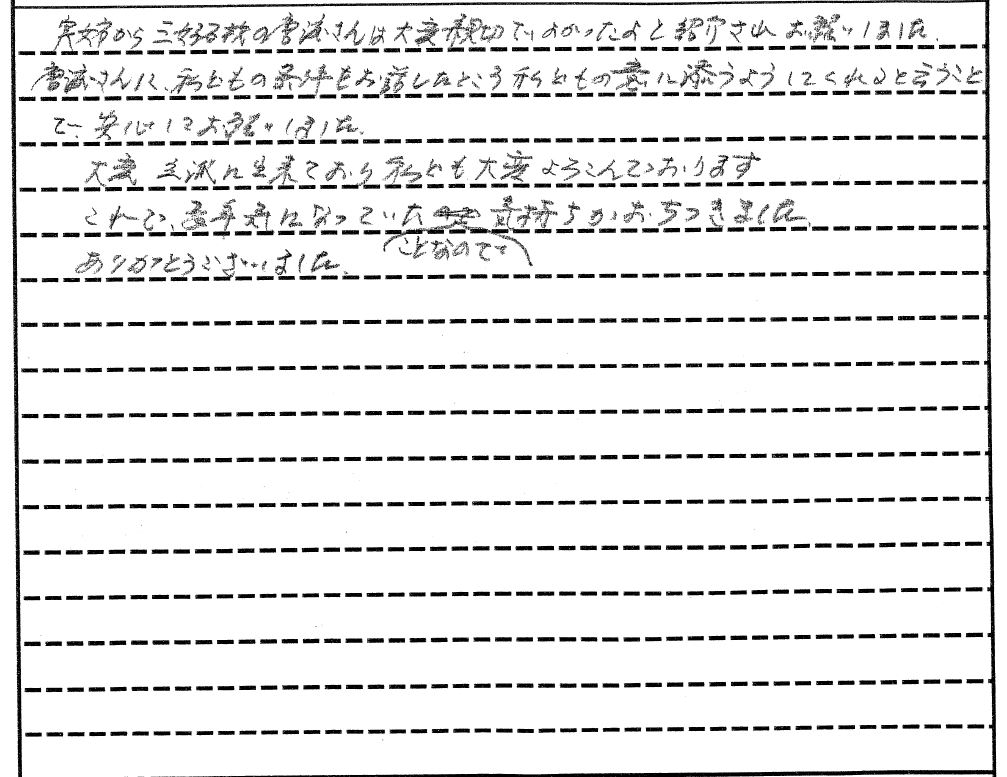 実姉から三好石材の唐渡さんは大変親切でよかったよと紹介されお願いしました。